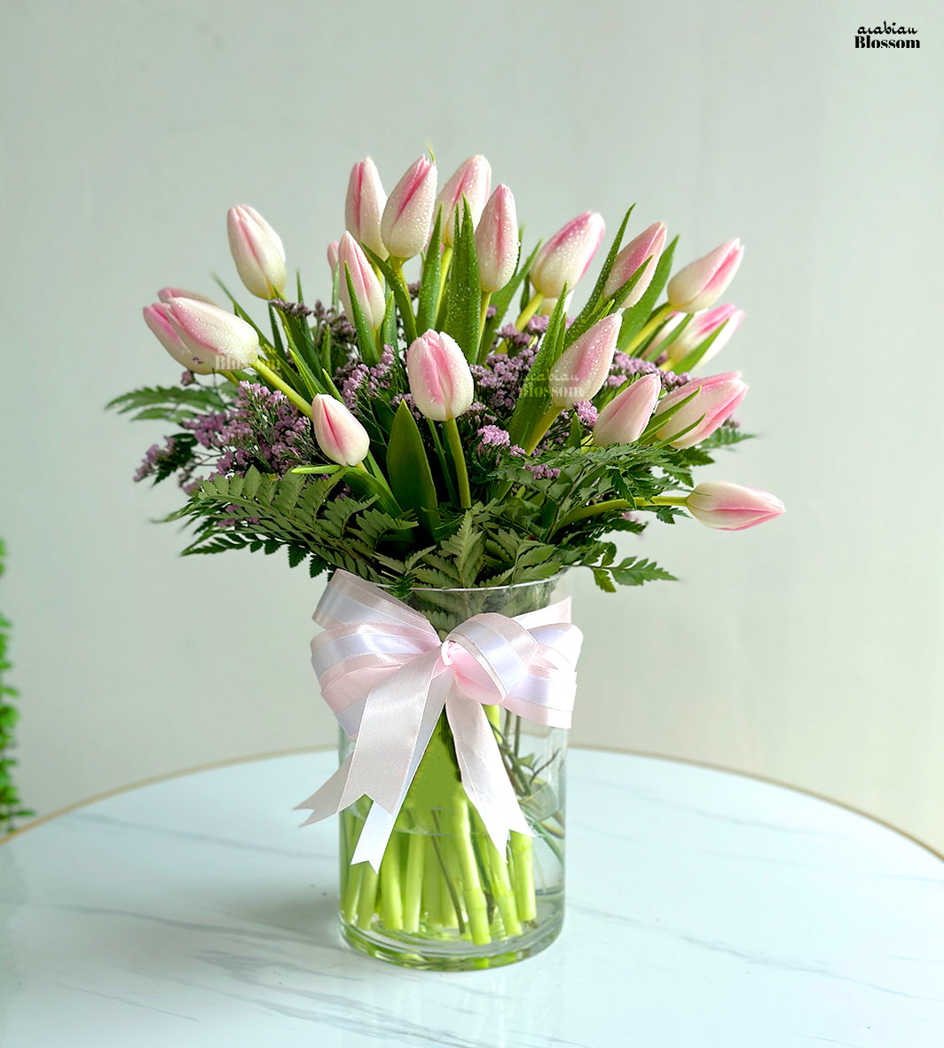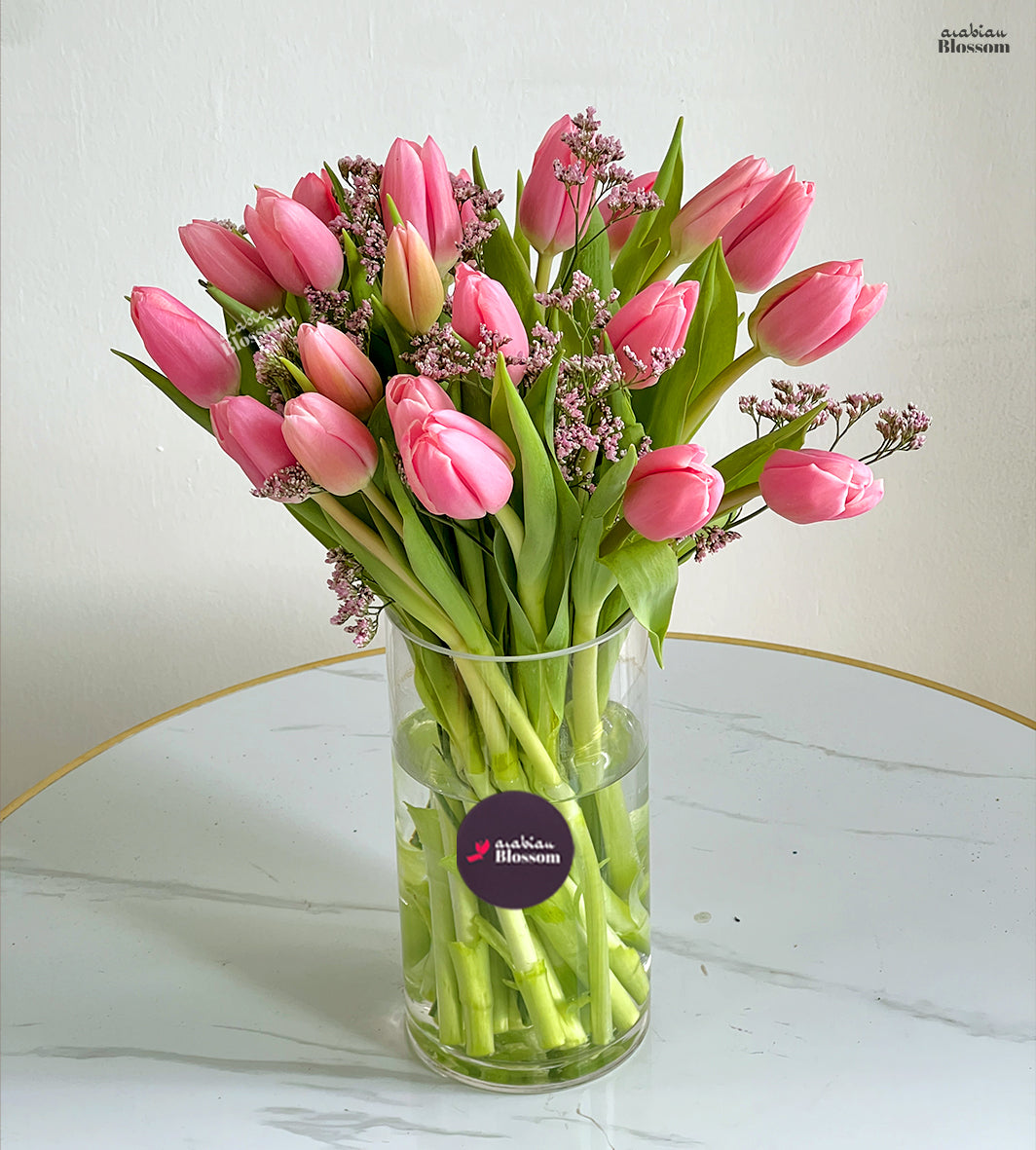 Pink Tulips in a Glass Vase - Fresh Flowers - Beautiful Arrangement -Newborn Flowers