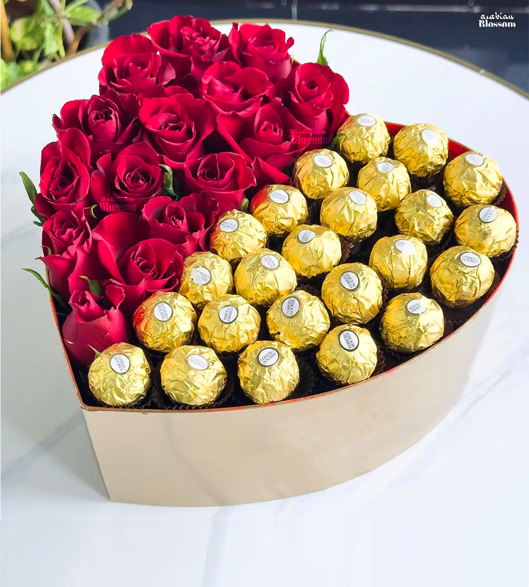 Red Roses and Ferrero in a Box - Flower For Mom and Newborn