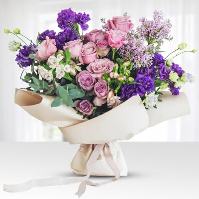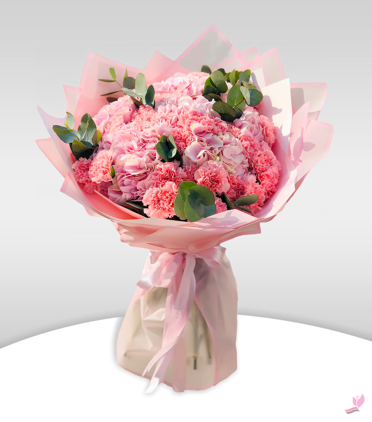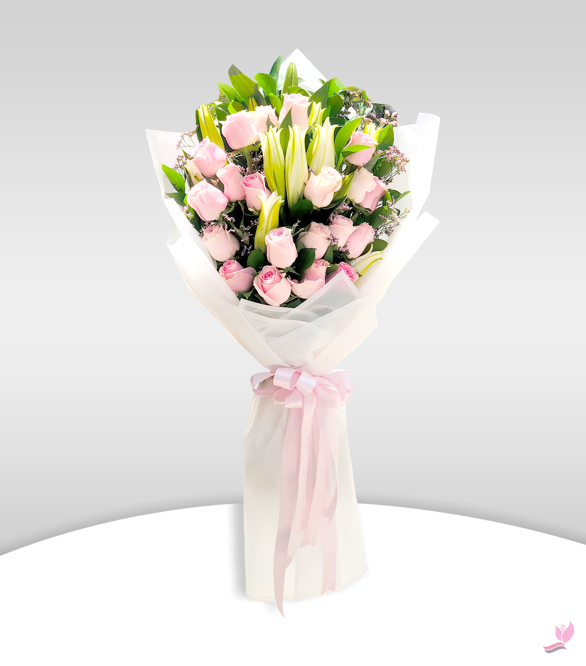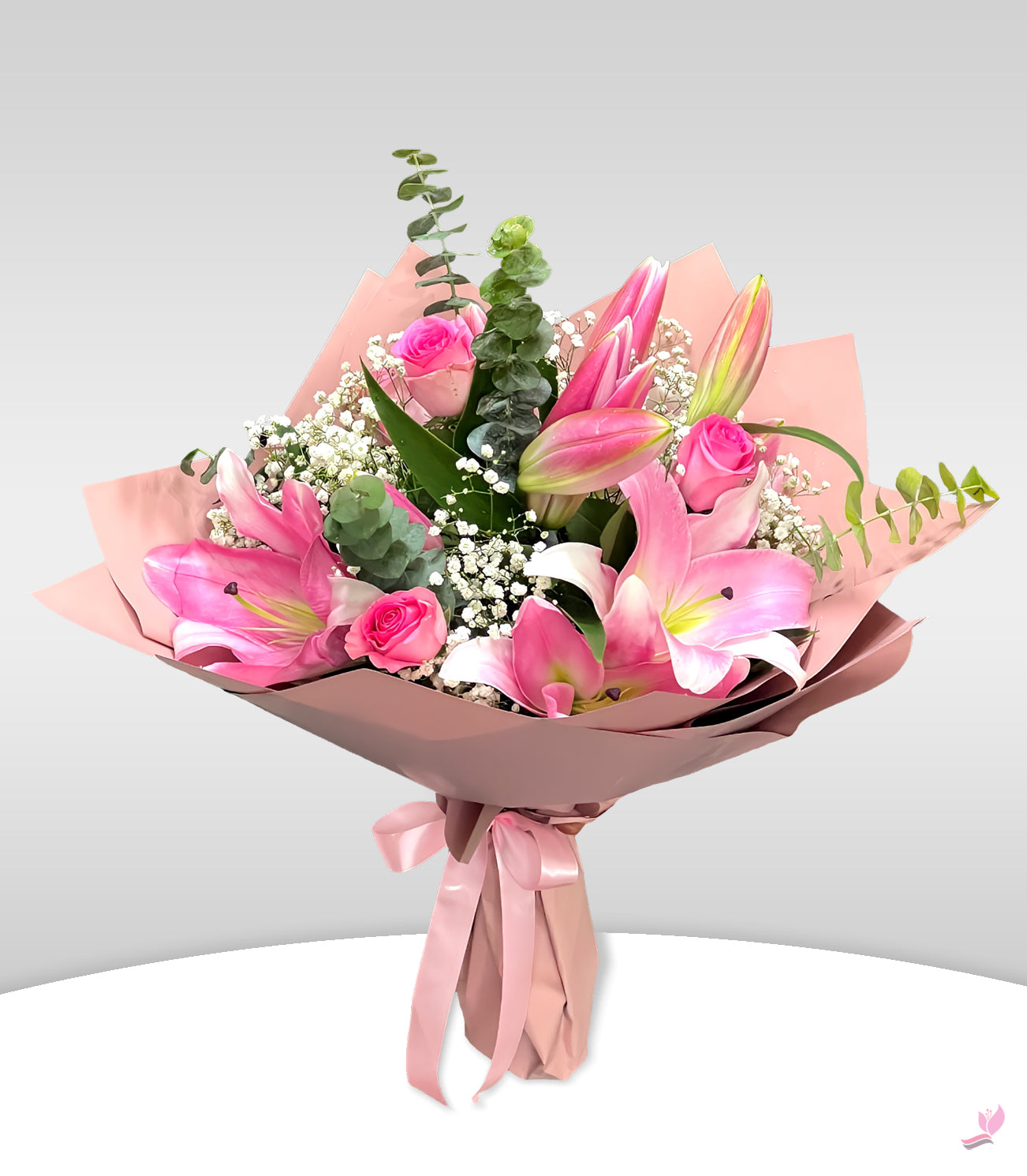 Pink Lilly and Roses Bouquet -Flower for Newborn and Mom - 3 Stems Of Pink Lily & 8 Stems Of Pink Rose