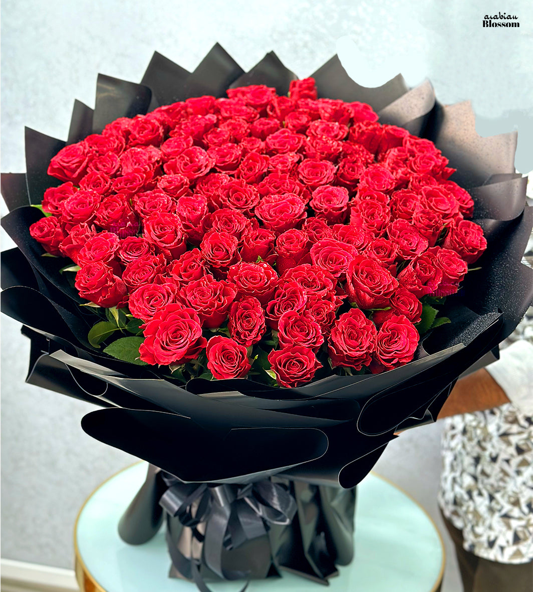 A Bouquet of 101 Red Roses Bouquet in a nice Black Wrapping