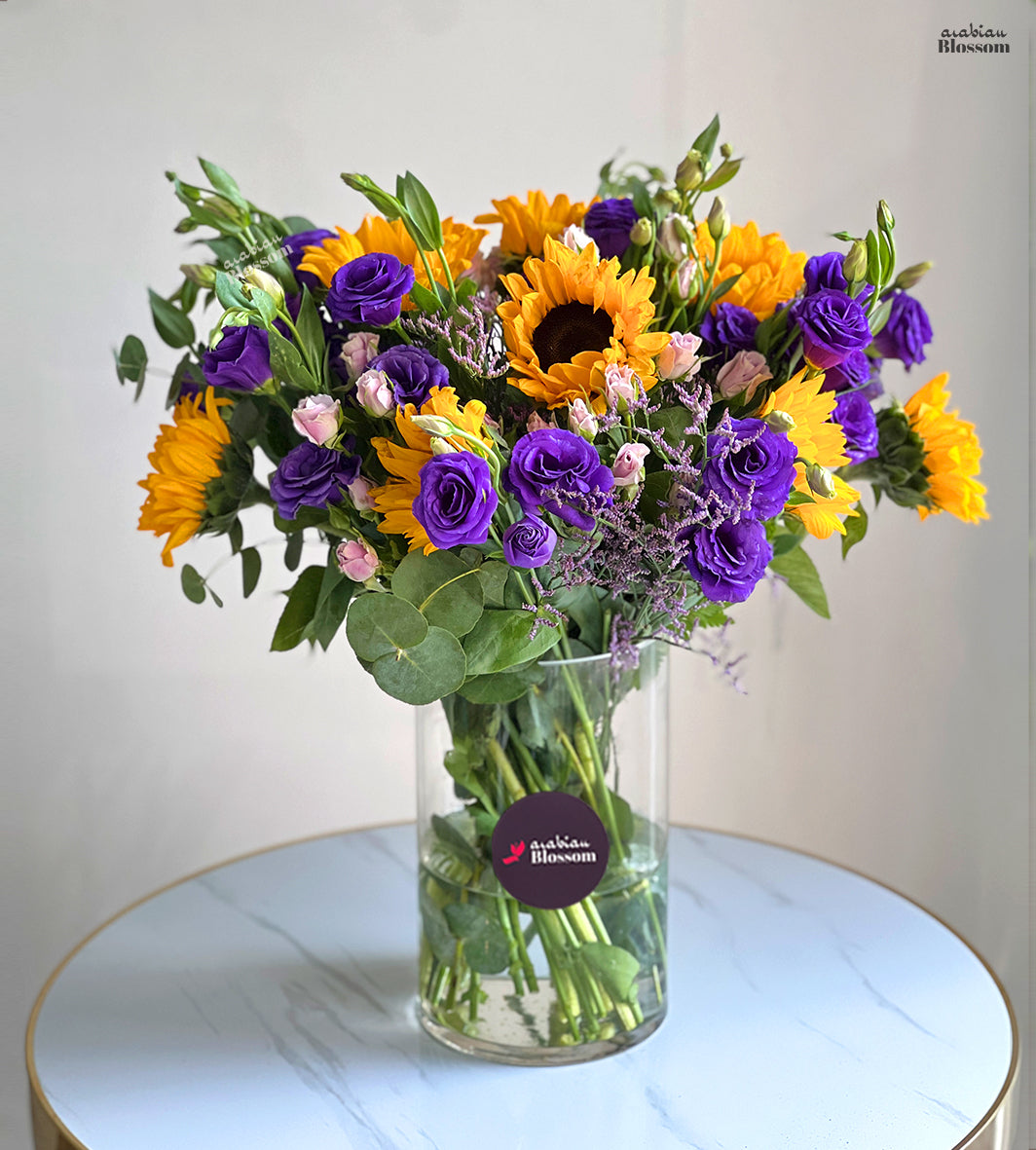 Red Roses & Sunflower Bouquet - Arabianblossom - Fresh Cut Flowers