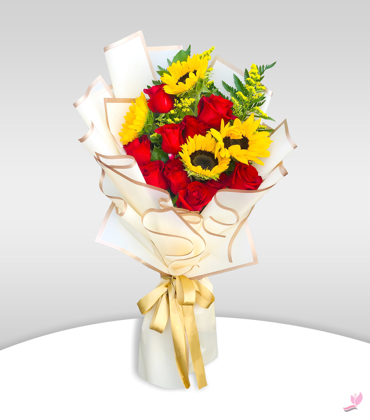 Red Roses & Sunflower Bouquet - Arabianblossom - Fresh Cut Flowers